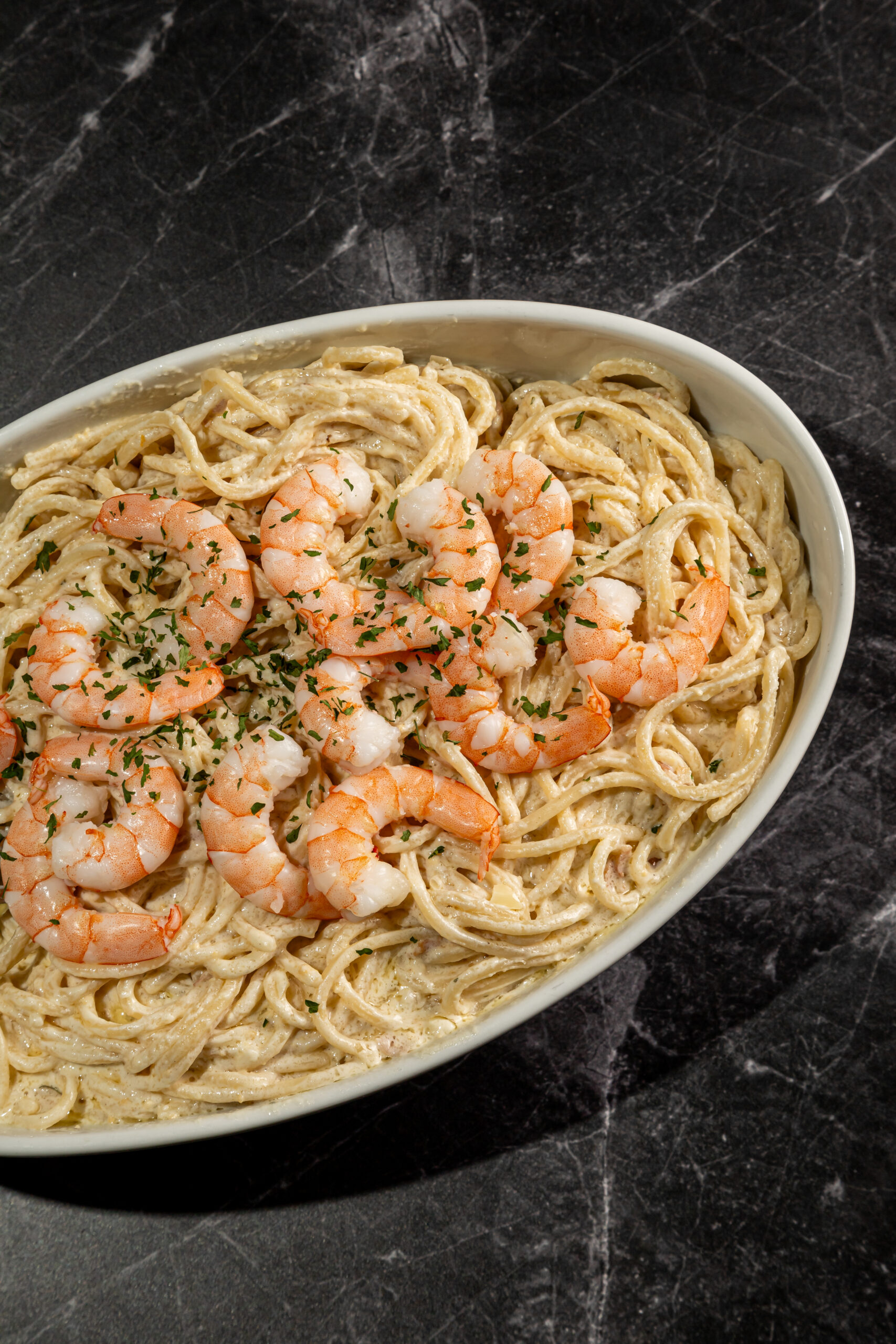 ESPAGUETI ALFREDO CON CAMARONES